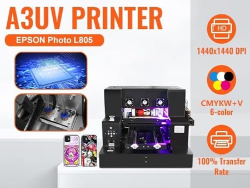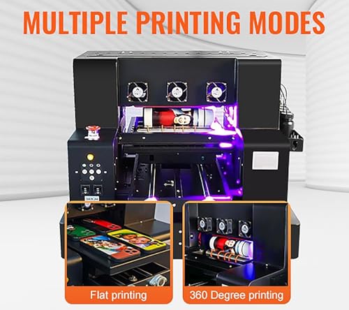 Impresora UV A3 UV LED Flatbed Impresora multifunción UV Printer inyección de tinta portátil USB 1440 x 1440 dpi 220 V con rotación para botellas/papel/funda del teléfono/plástico/pvc/Madera/UVDTF etc