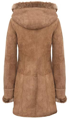 Infinity Leather Abrigo Elegante de Piel de Oveja con Piel de Oveja Marrón Merino con Capucha Marrón Claro para Mujer