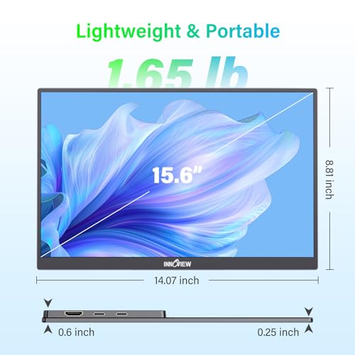 Monitor portátil para laptop: extensor de pantalla para laptop InnoView de 15.6 pulgadas, ultraligero y fácil de llevar, perfecto para viajes o trabajo remoto. Perfecto para viajeros, estudiantes, jugadores, ingenieros y profesionales de oficina, se conecta a laptops, MacBooks, teléfonos, consolas de juegos, tabletas y Xbox a través de una sola señal y cable de alimentación. Mejore la productividad para juegos, trabajo, reuniones y estudio con una configuración sin esfuerzo.