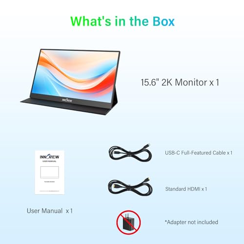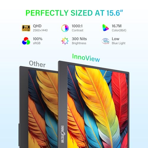 InnoView Monitor portátil de 15.6 pulgadas 2K QHD 100% sRGB con funda protectora, altavoz integrado USB C estándar HDMI Ultra-Slim Monitor de viaje para portátil, MacBook, teléfono, PS Xbox Switch