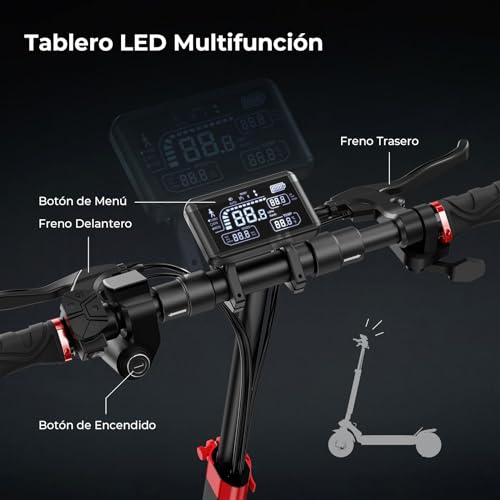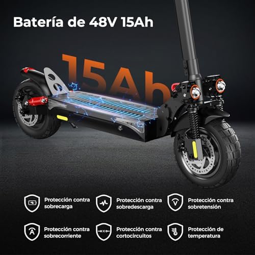 Especificaciones: iScooter Patinete Electrico Adultos con Cerraduras Electrónicas y Cerraduras, Poste elevable, Batería 48V 12.5Ah, Patinete Eléctrico Plegable 10″ con App, Carga 200 kg, Autonomía 45 km,Triple Frenado