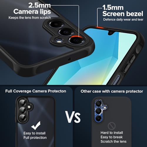 Especificaciones: ivoler Funda Mate Negro para Samsung Galaxy A16 4G / A16 5G, [Protección Lente Cámara] [Protección Militar] Carcasa Protectora Antigolpes Trasera Translúcida Antihuellas Silicona Case