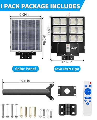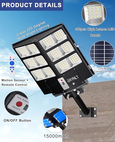 JAYNLT Y-2000W Luz solar de calle, 200000LM 6500K luces de inundación solar al aire libre del atardecer al amanecer, 6500K IP67 impermeable luz de estacionamiento al aire libre con sensor de movimiento y control remoto para garaje, carretera