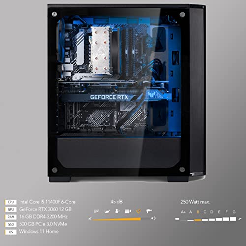 Especificaciones: JOULE PERFORMANCE Force Gaming PC Nuke RTX3060 II5 – Ordenador con SSD de 500 GB, GeForce RTX 3060 12 GB, Arctic Cooling Freezer 34, Tarjeta gráfica Negra 3060