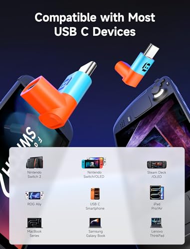 JSAUX Adaptador USB C a USB C de 90 grados, paquete de 2, 100 W y 40 Gbps de transferencia de datos de ángulo recto tipo C adaptador para Steam Deck, Switch 2, ROG Ally, iPhone 15/16/17/Air, tabletas
