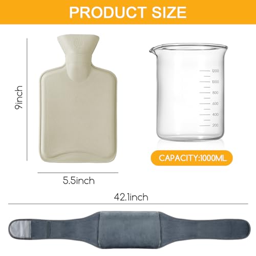 Especificaciones: Jsdoin Botella de Agua Caliente, Botella de Agua Caliente con Suave Felpa Funda, 1L Cinturón Bolsa de Agua Caliente para Mantener Caliente, Aliviar Dolores Muculares