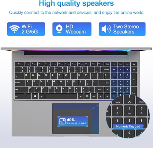 【Cuatro altavoces estéreo】 (Cuatro altavoces estéreo) El ultrabook viene con cuatro altavoces estéreo de alta calidad para una experiencia de sonido inmersiva, y la gran pantalla con altavoces estéreo hace que ver videos sea lo más inmersivo posible.