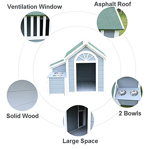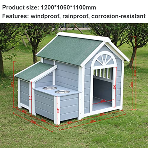 Especificaciones: JYCCH Casa de Madera Extragrande con 2 tazones, Perrera Exterior Resistente a la Intemperie para Perros Grandes, caseta de Perro aislada clásica con habitación Interior, Verde