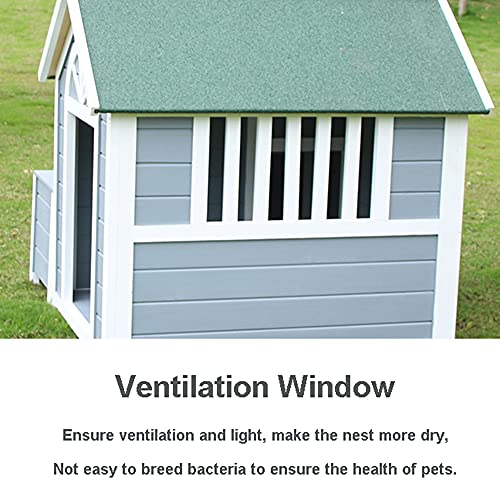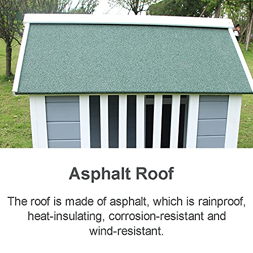 Casa para perros resistente a la intemperie: la casa para perros cuenta con un techo de tejas de asfalto resistente al agua para una mayor protección de su mascota contra los elementos, el diseño de techo inclinado y un piso elevado para mantener a su mascota seca y ventilada.