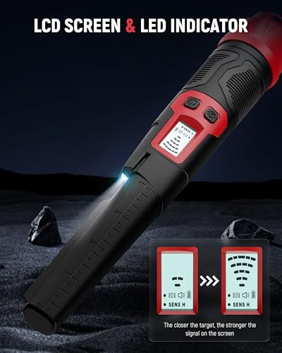【IP68 totalmente resistente al agua】Carcasa impermeable de alta calidad. Este puntero se puede utilizar en el agua, detecta con precisión tesoros en el agua, tiene una pantalla LCD inteligente que muestra la intensidad de la señal del objetivo detectado. ¡La elección perfecta para la búsqueda de tesoros en áreas estrechas a las que su típico detector de metales no puede llegar!