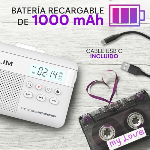 Especificaciones: KLIM K7 Reproductor Cassette + Conversor de Cassette a MP3 + Walkman Cassette Player Portátil con Micrófono y Altavoz Integrados + BaterÃa Recargable + Auriculares + Tarjeta SD 16 GB