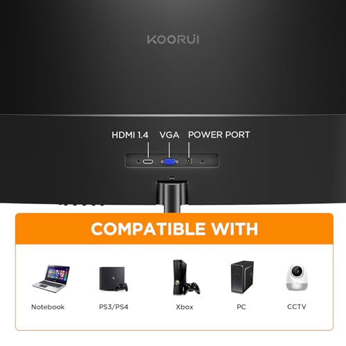 Amplia Compatibilidad: Display curvo de 24 pulgadas KOORUI equipado con 1 puerto HDMI y puerto VGA, fácil acceso a sus dispositivos favoritos con 1 solo cable, appropriate con l. a. mayoría de laptops y PC.