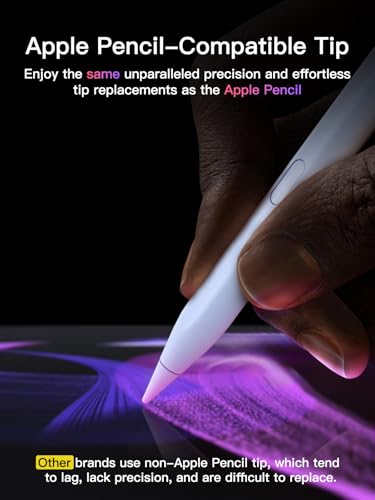 Sensibilidad de inclinación y precisión de píxeles: equipado con la punta original reemplazable de Apple Pencil (incluye 3 puntas adicionales), nuestro dispositivo ofrece precisión perfecta en píxeles y baja latencia líder en la industria. Con sensibilidad de inclinación, permite dibujar, dibujar, colorear, tomar notas y marcar PDF sin esfuerzo, proporcionando una experiencia natural y perfecta, al igual que usar un lápiz real. ***Nota: el bolígrafo no tiene sensibilidad a la presión
