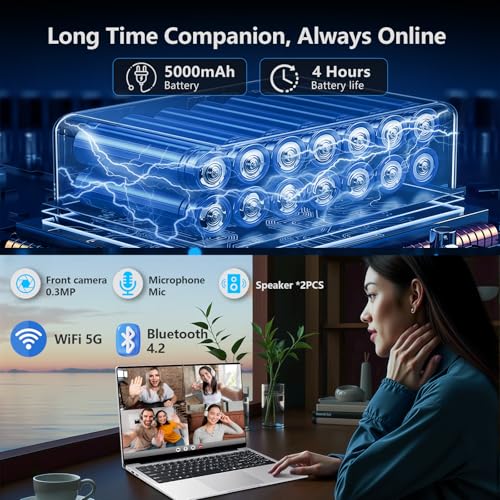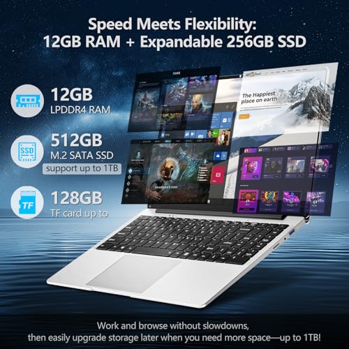 Rendimiento suave para la informática diaria: la computadora portátil empresarial tiene un procesador Celeron N4000 integrado, DDR4 12GB RAM y 512GB SSD (ampliable a 1 TB) y ranura para tarjeta TF (hasta 128 GB) que garantizan una rápida multitarea en esta computadora portátil. Core UHD Graphics 600 (Gemini Lake) – Reproducción de video 4K suave y rendimiento energéticamente eficiente para tareas diarias. Ideal para estudiantes y profesionales.