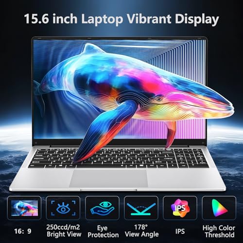 Vibrante pantalla FHD de 15.6″ para trabajo y estudio: resolución nítida de 1920 x 1080 con brillo de 250 nits y relación de aspecto 16:9, ideal para películas, navegación y tareas de oficina en este ordenador portátil. La elección perfecta para el trabajo, el estudio y la computadora portátil de oficina
