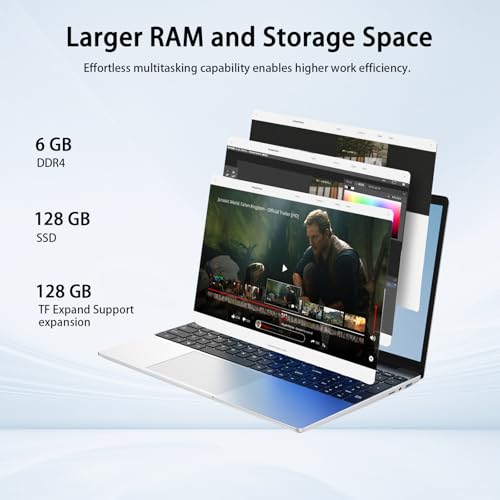 Amplia RAM de 6 GB + 128 GB de almacenamiento: multitarea sin miedo con 6 GB de RAM LPDDR4 que acelera el lanzamiento de aplicaciones, transferencias de archivos y operaciones complejas en este ágil ordenador portátil. El almacenamiento de alta velocidad de 128 GB ofrece amplio espacio para documentos, presentaciones y software esencial, mientras que la ranura MicroSD ofrece una expansión flexible de hasta 1 TB para fotógrafos o coleccionistas de contenido multimedia. A diferencia de los competidores de nivel de entrada limitados a 4 GB de RAM, nuestra configuración cambia fácilmente entre herramientas de diseño como Canva, procesamiento de hojas de cálculo y transmisión, todo mientras mantiene la capacidad de respuesta del sistema. Combinado con la optimización de memoria de Win 11, este portátil ofrece una productividad sostenida sin compromisos.