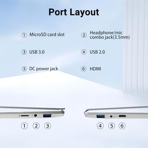 Suite de conectividad sin interrupciones: manténgase hiperconectado con Wi-Fi 5 de doble banda para transmisión 4K sin búfer, emparejamiento Bluetooth 5.0 para periféricos y puertos versátiles: USB 3.0 (transferencia de datos de 5 Gbps), USB 2.0, Mini HDMI para pantallas externas y conector de audio de 3,5 mm. El puerto de carga CC dedicado garantiza un abasto de bono estable durante las presentaciones críticas, mientras que el slot microSD accede instantáneamente a las unidades de respaldo o a las grabaciones de la cámara. Las videollamadas sobresalen gracias a la cámara frontal de 720p y los micrófonos digitales duales con expulsión de ruido, lo que convierte a esta computadora portátil Win 11 en una central eléctrica para teletrabajo.