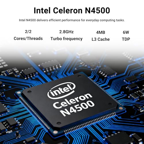 Rendimiento Intel potente: aprovecha la eficiencia del procesador Intel Celeron N4500 en este portátil rápido diseñado para un multitarea sin interrupciones. Gracias al turbo dual core de hasta 2,8 GHz, maneja sin problemas suites de oficina, más de 20 pestañas del navegador y videollamadas HD sin retrasos frustrantes. Precargado con Win 11 Pro auténtico, disfruta de la seguridad de nivel empresarial, diseños de snap intuitivos para la optimización del flujo de trabajo y la integración sin esfuerzo de Microsoft Teams: ideal para trabajadores remotos y aulas híbridas.