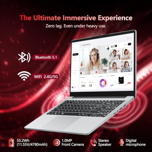 Batería de larga duración y conectividad versátil: Los angeles batería de 55.2Wh para computadoras portátiles garantiza productividad durante todo el día. Netbook mantente conectado con Wi-Fi 2.4G/5G, BT 5.1, 3 puertos USB-A 3.2, Tipo-C (soporta carga PD y transferencia de datos), HDMI 1.4, y un conector de audio de 3.5mm.