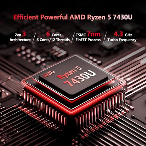 Potente rendimiento AMD Ryzen five: equipado con el procesador AMD Ryzen five-7430U (6 núcleos, 12 hilos, reloj base de 2.1 GHz, frecuencia máxima de hasta 4.3 GHz), esta computadora portátil ofrece una multitarea clever y un rendimiento eficiente para el trabajo, el estudio y el entretenimiento.
