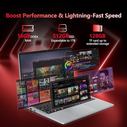 Amplio almacenamiento y memoria ampliable: la computadora portátil 2025 incluye 16 GB de RAM DDR4 (ampliable hasta 64 GB) y un SSD de 512 GB (admite hasta 1 TB a través de ranuras M.2 duales). La ranura Micro SD adicional para portátiles permite una expansión de almacenamiento de hasta 128 GB para archivos y medios adicionales.