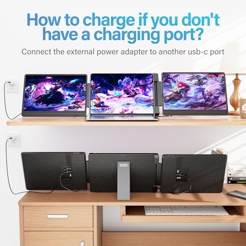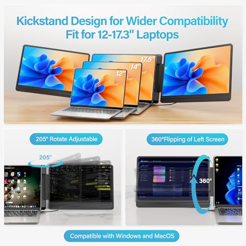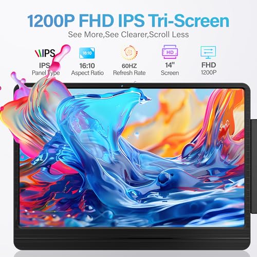 Laptop Screen Extender, 14’’FHD 1200P Triple Portable Monitor for Laptop Ultra-Slim IPS Display,HDMI/USB-C Plug and Play for 12″-17.5″ Laptops Compatible with Win and MacBook for Travel /Home/Office