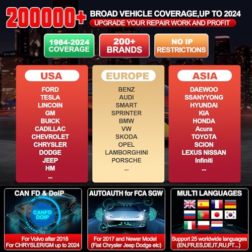 [2024 Nouvelle version de la mise à jour] LAUNCH X431 PRO3 ACE :Android 10.0 OS, 2.0GHz 4-core CPU updated to operate 2x more multi-task repairs. Le double WiFi 2.4GHz & 5GHz permet un transfert de données 5X plus rapide entre le scanner LAUNCH et les voitures. Grâce aux modules CAN FD et DoIP et au module HD, ce scanner automatique fonctionne sur les véhicules les plus récents et les véhicules lourds 24V du monde entier. 4+64GB fournit une plus grande mémoire de données. La batterie de 6300mAh.