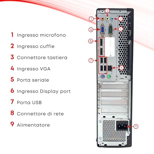 [Especificaciones técnicas: 6 x USB-A 3.0, 2 x USB-A 2.0, Gb LAN, 2 x DisplayPort, VGA, serial, 2 x PS/2, Audio out, Audio In/Out, Audio In/Out – 92 x 343 x 290 mm – Tarjeta gráfica Intel HD Graphics 630