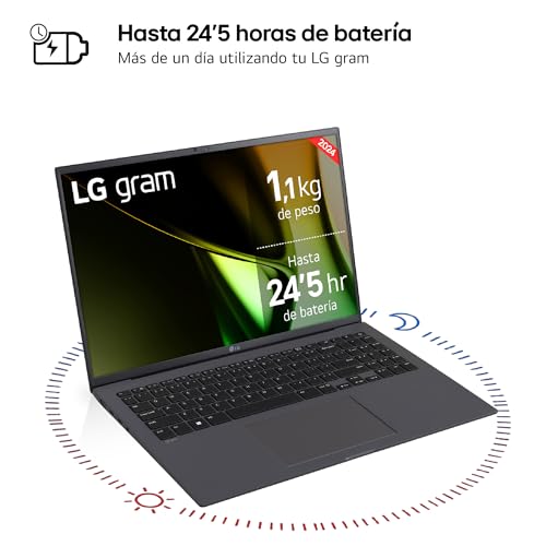 LG Gram 16Z90S-G.AD76B – Portátil Ultraligero de 40.6 cm (16″) 2560×1600, Panel IPS Antirreflejo, Intel Core Ultra 7, 32 GB RAM, 512GB SSD, 1.199 g, BaterÃa 24.5 horas, Windows 11 Home, Gris Carbón