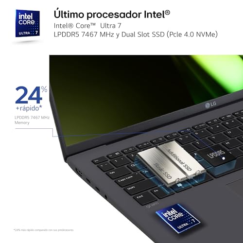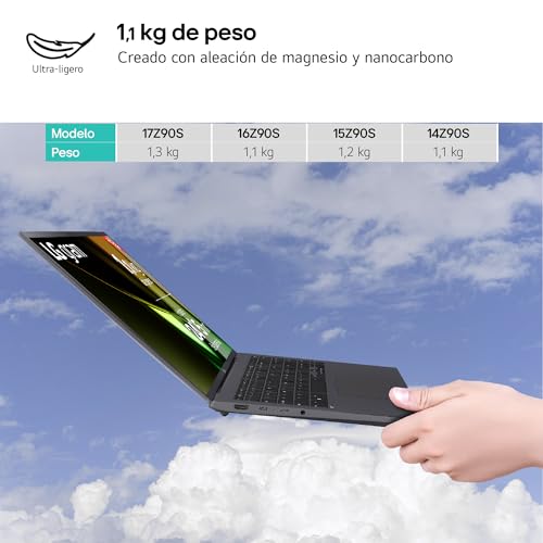 Especificaciones: LG Gram 16Z90S-G.AD76B – Portátil Ultraligero de 40.6 cm (16″) 2560×1600, Panel IPS Antirreflejo, Intel Core Ultra 7, 32 GB RAM, 512GB SSD, 1.199 g, BaterÃa 24.5 horas, Windows 11 Home, Gris Carbón