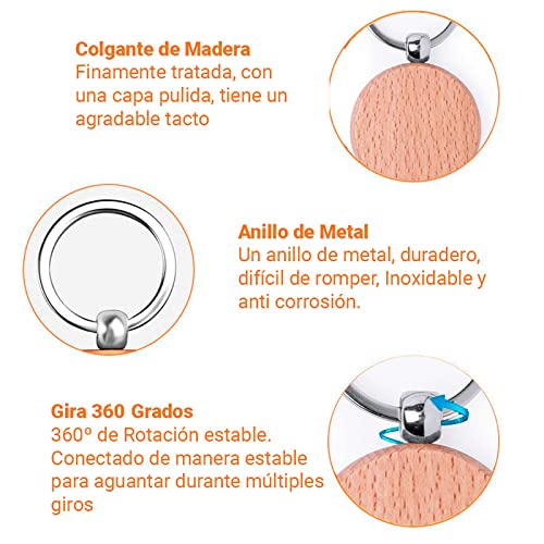 Llavero redondo de madera. Medidas: 4cms de diámetro. Detalle orginal para agradecer la asistencia de invitados a eventos como cumpleaños, bodas, bautizos, comuniones, reuniones de empresa, aniversarios, presentaciones comerciales etc. La anilla es de metal, inoxidable, duradero, difícil de romper con anticorrosión. Gira 360 grados siendo la rotación estable. cada llavero de madera con frase viene presentación con lámina de cartón blanco en bolsa de OPP transparente con autocierre adhesivo.