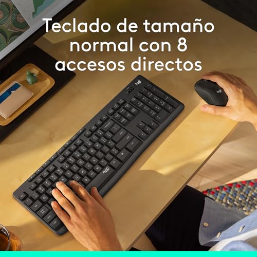 Especificaciones: Logitech MK295 Silent Combinación de Teclado y Ratón Inalámbricos con SilentTouch, Seguimiento Óptico, Tecnología Inalámbrica sin Demoras, 90% Menos de Ruido, QWERTY Español, Negro