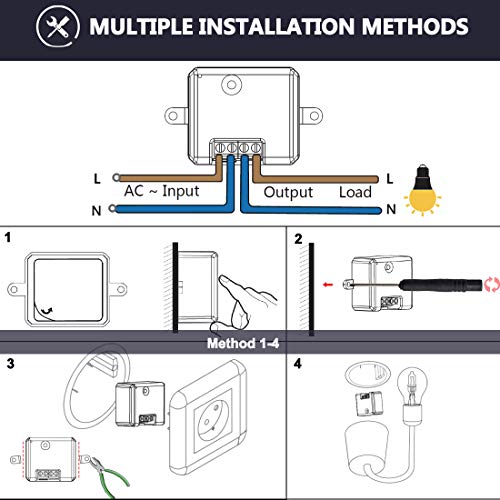 Especificaciones: LoraTap Interruptor WiFi Inteligente Módulo de Interruptor Inalámbrico Temporizador Control Remoto por App iOS o Android, Compatible con Alexa, 10A/2500W