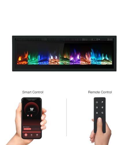 Especificaciones: M.C.Haus Chimenea Eléctrica, Montado en la Pared, Independiente Placa de Metal, Llama Colorida, Control Remoto con Cristal, 900 W/1800 W (60″/153 cm, Smart WiFi)