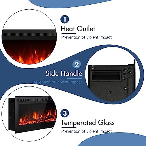 🔥Calor y ahorro de energía:La salida de aire caliente está situada en la zona frontal superior. El fuego eléctrico de pared calienta hasta 37㎡, proporcionándole un espacio cálido y tranquilo en los días fríos. Equipado con un apagado automático de seguridad para proteger contra el sobrecalentamiento.