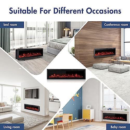 🔥60inch chimenea eléctrica: 153cm de ancho chimenea eléctrica, Tamaño frontal: 152.4×34.1×14.2cm(BxHxT); Tamaño trasero: 148.8×30.6×14.2cm(BxHxT); Insertar tamaño:150×32.3×15.2cm(BxHxT).