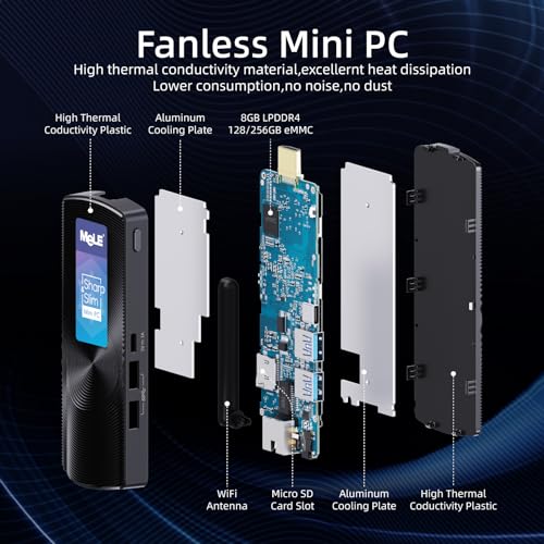 【Faneless, Pocket Size and Portable Design】Viene con una tecnología sin ventilador con 0dB de ruido que ofrece una experiencia silenciosa y cómoda cuando se trabaja. El tamaño de la palma diseñado ordenador se puede poner en un bolsillo y fácil de llevar a cabo para un viaje de negocios.