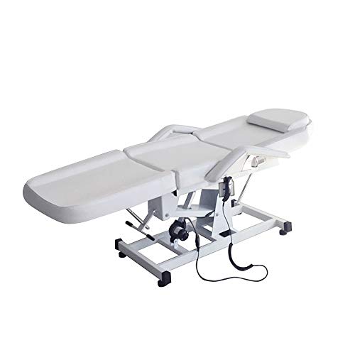 Mesa de masaje ajustable cama de masaje plegable eléctrica de piel sintética para salón profesional y hogar, 82 cm (L) x 180 cm (W) x 63-87 cm (H) (blanco)