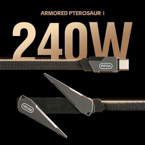 MFish Cable USB C de 240 W con soporte, ángulo recto de 90° de carga rápida trenzado USB C a USB C, cargador plegable para iPhone 17, iPad, MacBook, Samsung, juegos + manos libres negro 3.93 pies