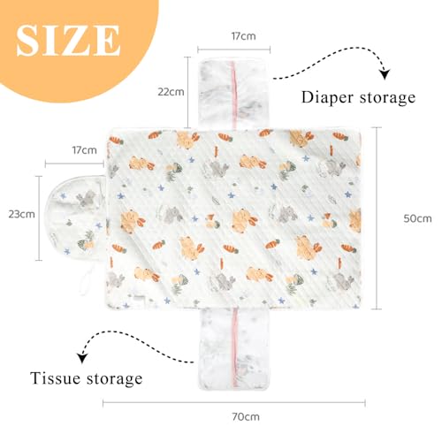 MHwan Cambiador Bebe Portatil, Cambiador Portatil Bebe Impermeable y Transpirable de Algodón Puro, 50x70cm, Muda Fraldas Portatil Viaje Plegable, Lavable, se Puede Usar en Todas Las Estaciones