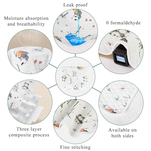 Algodón puro y transpirable: la capa superior del cambiador está hecha de tejido de punto de algodón puro transpirable y la capa inferior está hecha de fibra de rizo. El producto cumple con los estándares maternos e infantiles de Clase A, no es fluorescente ni contiene formaldehído y se puede utilizar por ambas caras. El diseño transpirable mantiene la piel del bebé seca y cómoda, evita la congestión y la humedad y hace que el bebé se sienta cómodo incluso en el caluroso verano. Se puede utilizar en cualquier época del año.