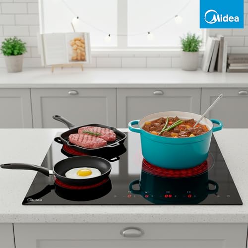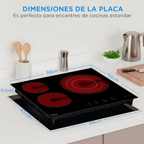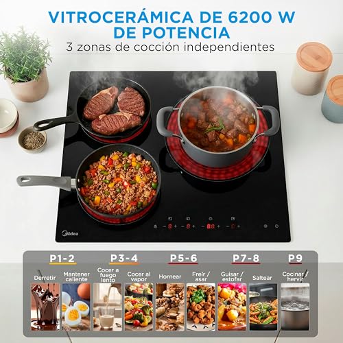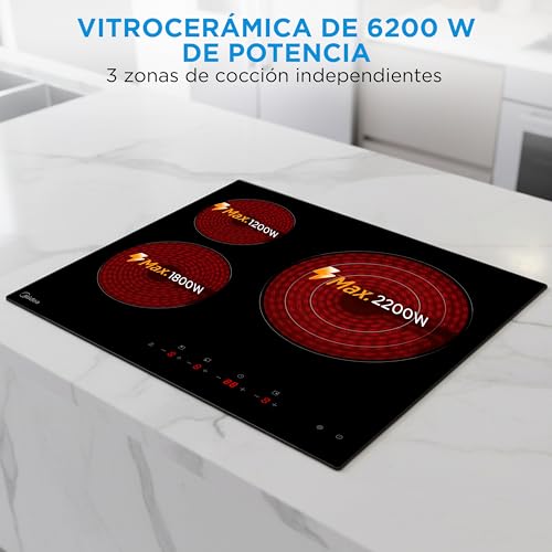 MIDEA Placa Vitroceramica 3 fuegos 6200 W – Vitroceramica Integrada con Panel de control tactil, Indicador de Luz, Temporizador, Child lock y Protección por Sobrecalentamiento