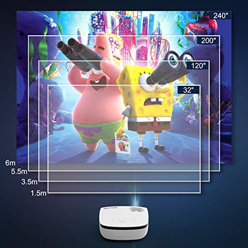 POTENTE TEATRO CONVERTIBLE EN TAMAÑO DE LA PALMA: Este lindo y elegante proyector tiene un exterior blanco con un acabado ligeramente mate. No sólo sirve como un teatro ambulante que es fácil de llevar con usted o que cabe bien en su habitación, sino que también es un regalo ideal para su familia o amigos, adultos o niños. ¡Este proyector es pequeño, pero ofrece brillo y nitidez aún mejores que los proyectores más grandes!