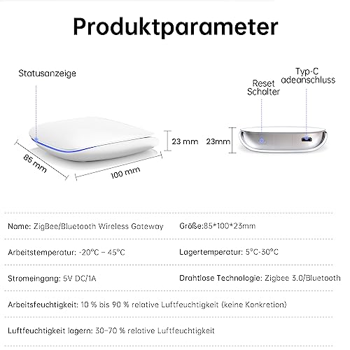 Especificaciones: MIUCDA Tuya Zigbee Gateway Hub 3 en 1 ZigBee 3.0 Bluetooth 5.0 WiFi Hub para domótica inalámbrica Smart Gateway Bridge Compatible con Alexa, Google Home, Smart Life (blanco)