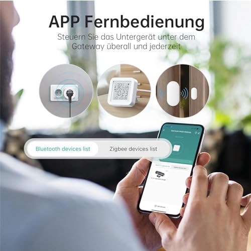 Mando a distancia de aplicación: controla los subdispositivos bajo la puerta de enlace en cualquier momento y en cualquier lugar a través de la aplicación Tuya o Smart Life. Tales como sensores de puertas y ventanas ZigBee, termostato de radiador ZigBee, interruptor inteligente ZigBee/enchufe, cerradura inteligente Bluetooth, etc.