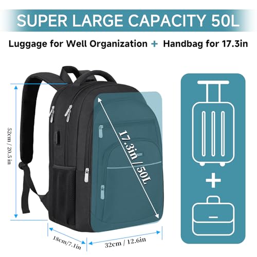 Mochila Hombre, Mochila Portatil Impermeable Mochila Ordenador Portatil 17.3 Pulgadas resistente al agua, Mochila Portatil con Puerto USB Mochila Antirrobo del Negocio Trabajo Diario Viaje Escolares