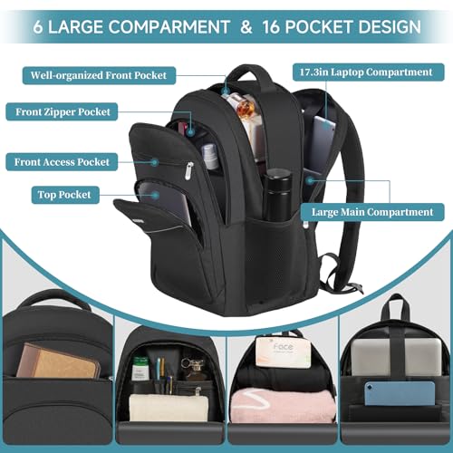 Especificaciones: Mochila Hombre, Mochila Portatil Impermeable Mochila Ordenador Portatil 17.3 Pulgadas resistente al agua, Mochila Portatil con Puerto USB Mochila Antirrobo del Negocio Trabajo Diario Viaje Escolares
