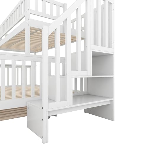 Moimhear 90 x 200 cm sobre 140 x 200 litera Infantil con Cama Plegable y Escalera, Color Blanco