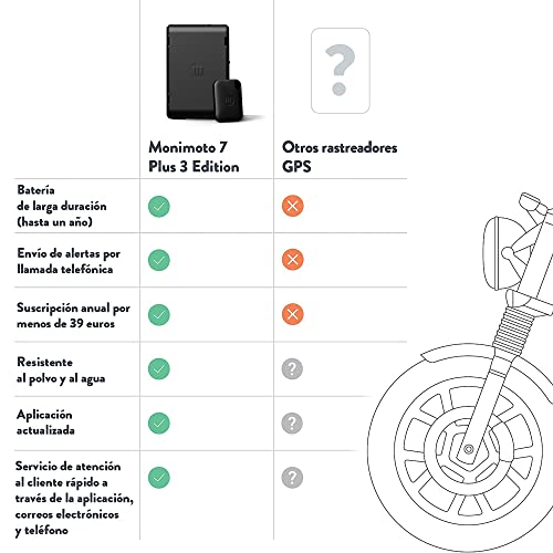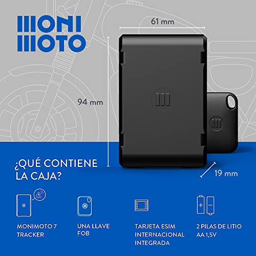 Especificaciones: MoniMoto 7 Plus 3 Edition. Localizador GPS para Motos y Coches | Fácil Instalación | Sin Cables | Gran Autonomía. Sistema Antirrobo | Alarma con Aviso al Móvil. Mini GPS Tracker Internacional