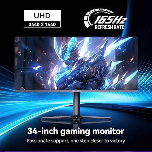Monitor curvo de 34 pulgadas, WQHD (3440 x 1440) 165Hz 1500R Monitor de computadora para juegos ultraancho, compatible con Freesync, 1 ms compatible con 2 HDMI y 2 DP, equipado con